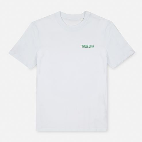 Kamiseta, kotoiz egina, Barbara Krugerren Untitled (Remember me), 1988/2020 lanaren estanpazioarekin.
